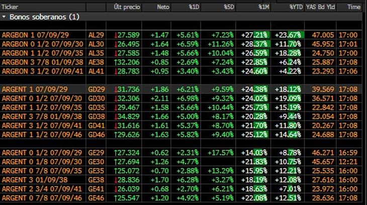 “Las favorables lecturas que dejaron el cierre de las candidaturas presidenciales, al mejorar el perfil de la oferta, repercutieron de inmediato positivamente sobre la dinámica de los activos domésticos”, recalcó el economista Gustavo Ber. Los activos “extienden el ‘trade electoral’ que ya venían ensayando, apostando anticipadamente a un cambio de ciclo político”, agregó.