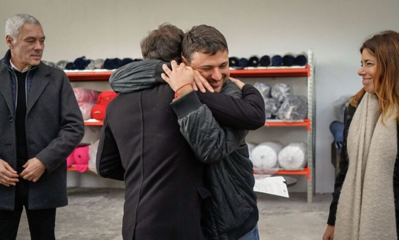 El precandidato a gobernador de la Provincia de Buenos Aires, Axel Kicillof, y el precandidato a presidente Juan Grabois, ambos de Unión por la Patria, visitaron juntos el polo textil cooperativo ubicado en el Polígono Industrial de Berisso (ex Frigorífico Swift).
